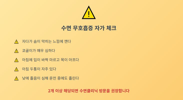 - 위에서 언급한 수면 무호흡증 의심 증상이 있다